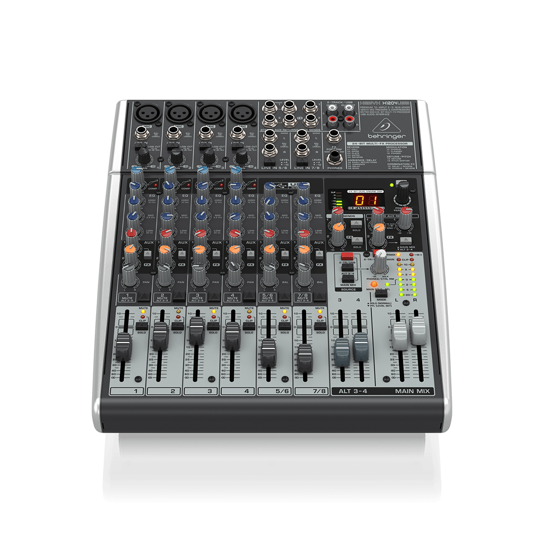 La Behringer QX1204USB est une table de mixage analogique compacte offrant 12 entrées, dont 4 préamplis micro XENYX de qualité studio avec alimentation fantôme. Elle intègre un processeur d’effets Klark Teknik avec 100 préréglages, un compresseur à un bouton par canal, un égaliseur 3 bandes de style britannique, et une interface audio USB 2×2 pour l’enregistrement direct sur ordinateur. Idéale pour les musiciens, les groupes ou les studios à domicile, elle combine flexibilité, qualité sonore et connectivité moderne.