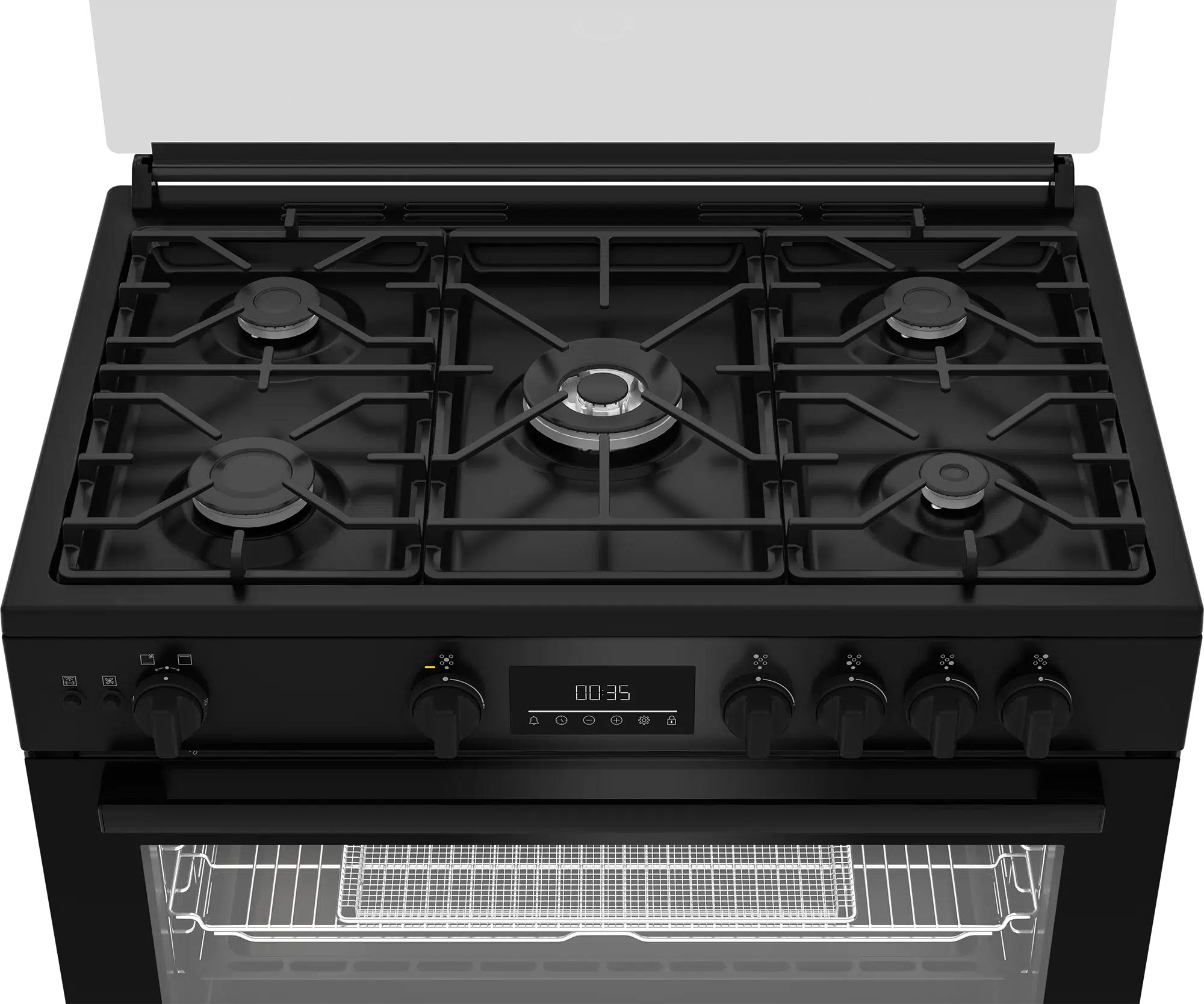 La cuisinière Enduro AFS9050GGBSIT est un appareil 5 feux à gaz au design noir élégant, idéale pour les cuisiniers exigeants. Elle dispose d’un grill avec double bouton de commande, d’un allumage automatique complet, d’une lampe intérieure et d’un tournebroche intégré pour une cuisson polyvalente et pratique.