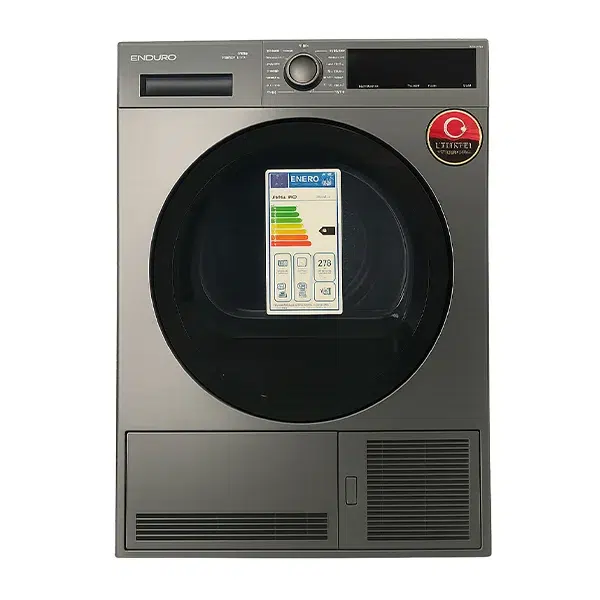 🔹 Enduro DR7SV est un sèche-linge à condensation automatique d’une capacité de 7 kg, classé énergie B, offrant une efficacité de condensation de 81 %. Il propose un programme standard coton en 125 minutes (pleine charge) avec un niveau sonore de 65 dB. Idéal pour un usage domestique, il allie performance et praticité avec une consommation annuelle de 504 kWh.