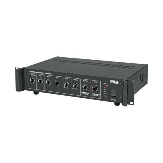 L’amplificateur AHUJA CMA-4400 de 50W offre un son puissant et clair, idéal pour les salles de réunion, lieux de culte et événements. Compact et durable, il garantit une performance fiable avec une protection intégrée pour une utilisation prolongée.