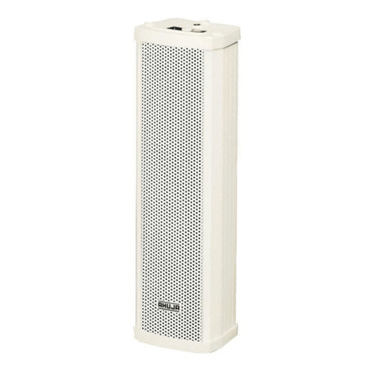 | Présentation générale du produit | Pour usage interne & externe comme dans les halls, salles, salons d’aéroport. Résistant aux intempéries – pour une utilisation sous les gouttières du toit. Couche de mousse pour protéger les haut-parleus de la poussière. Brides de fixation et le matériel fourni. Mince, compact, enceintes colonnes conçues esthétiquement. Couleur blanc cassé à intégrer à la plupart des intérieurs. Alluminium extrudé avec coffret couvre en plastique moulé, calandre grillagée en métal. Ligne 100V correspondant à un transformateur avec commutateur rotati |
