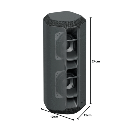 Conçue avec une structure robuste, la SRS-XE200 résiste aux éclaboussures d’eau et à la poussière, ce qui la rend idéale pour une utilisation en extérieur comme en intérieur. Son design compact et léger facilite le transport, tandis que sa conception moderne et élégante s’intègre parfaitement dans tous les décors.