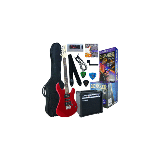 Ce kit complet Yamaha comprend également tout ce qu’il faut pour commencer immédiatement : un amplificateur compact mais puissant, une housse de transport, une sangle, des médiators, un câble jack, et un accordeur électronique.