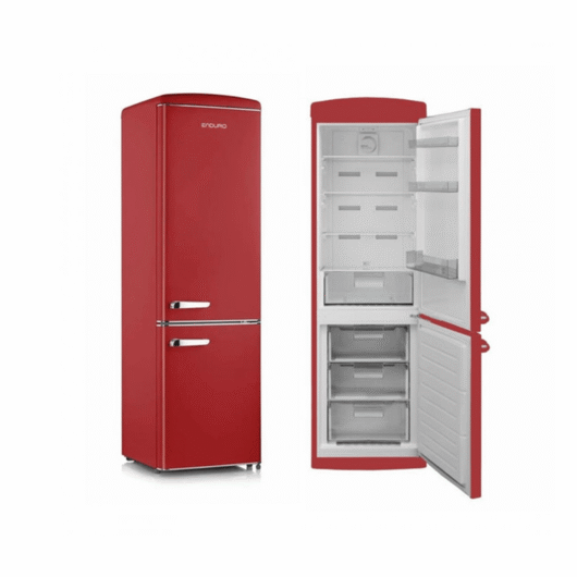 Explorez le réfrigérateur rétro Enduro Nofrost, d’une capacité de 400 litres, revêtu d’un rouge sang éclatant. Cet appareil allie nostalgie et innovation pour une conservation optimale des aliments, ajoutant une touche de caractère à votre cuisine.