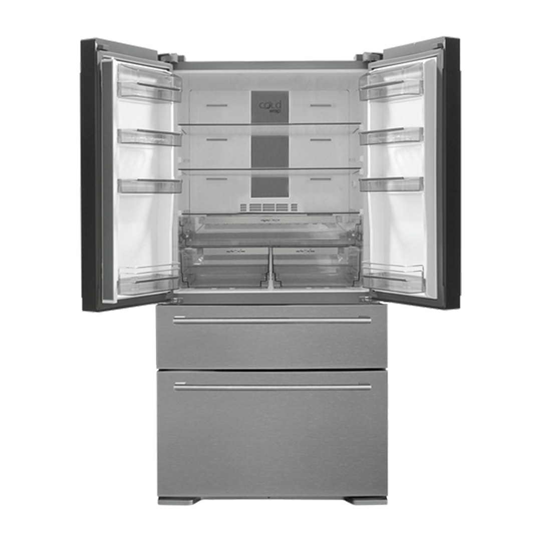 Le Réfrigérateur Enduro FD911P90X 4 portes 750L NoFrost en inox offre un espace de stockage généreux avec une organisation intelligente et une performance sans givre.