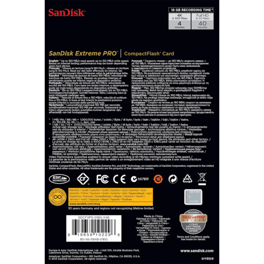 La Carte Mémoire CompactFlash 16 Go 50Mb/s SanDisk est l’option idéale pour les photographes et vidéastes à la recherche d’une solution de stockage fiable et rapide pour leurs appareils photo et caméras professionnels. Avec une capacité de 16 Go, cette carte permet de stocker un grand nombre de photos haute résolution, vidéos en Full HD et fichiers volumineux tout en offrant des performances constantes. Grâce à une vitesse de 50 Mb/s, vous bénéficiez d’une lecture rapide et d’une écriture fluide, même lors de prises de vue en rafale ou d’enregistrements vidéo longs.