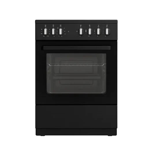 Avec son design noir élégant et moderne, cette cuisinière apporte une touche raffinée à votre espace cuisine. Son agencement ergonomique et sa structure robuste en font un appareil fiable, adapté aussi bien à un usage domestique qu’intensif.