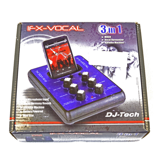 DJ-Tech Soundbox FX : Cet appareil permet d’ajouter des effets à votre voix ou à vos fichiers MP3. Il intègre un synthétiseur 24 bits/96 kHz offrant des effets tels que la réverbération et le délai.