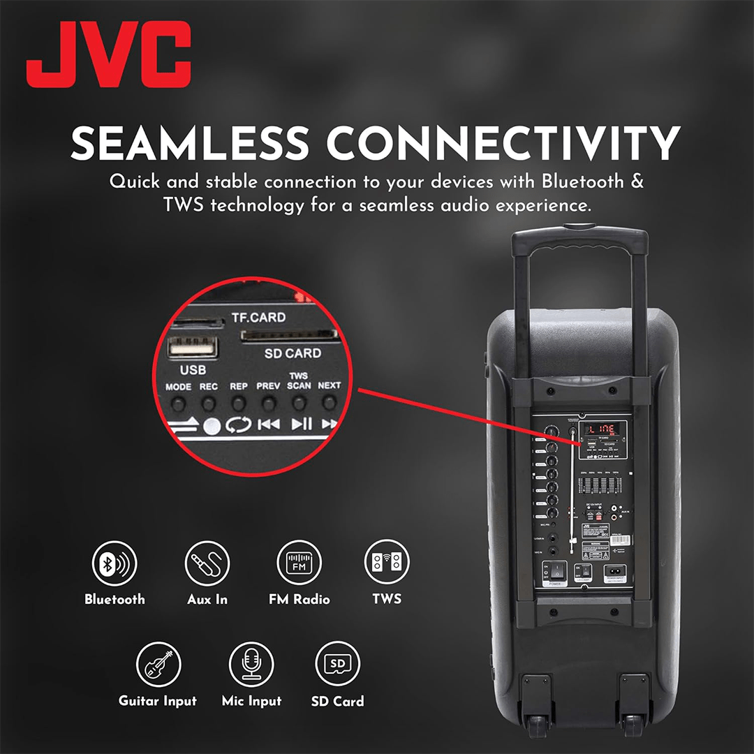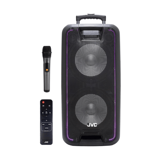 Plongez dans une expérience sonore unique avec l’enceinte portable JVC XSN518PB, équipée de 2 microphones, Bluetooth, USB, et radio FM pour animer vos soirées, karaokés, et événements. Compacte et puissante, elle allie mobilité et performance pour répondre à tous vos besoins musicaux au quotidien.