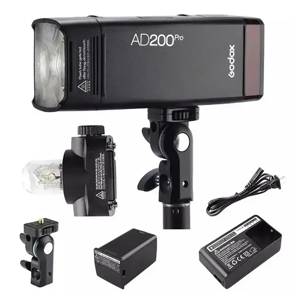 Le GODOX AD200Pro est un flash portable ultra-polyvalent de 200 Ws, doté de têtes interchangeables (bare bulb et speedlight), prise en charge TTL/HSS, et jusqu’à 500 éclairs à pleine puissance.