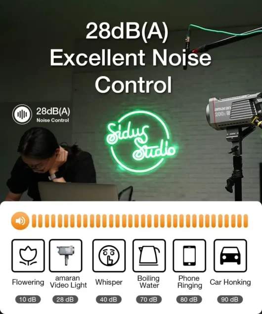Avec une puissance maximale de 200W et une sortie lumineuse de 17 000 lumens, l’Amaran 200X S est idéale pour les productions vidéo, les séances photo en studio et les projets de contenu créatif nécessitant un éclairage fiable et de haute qualité.