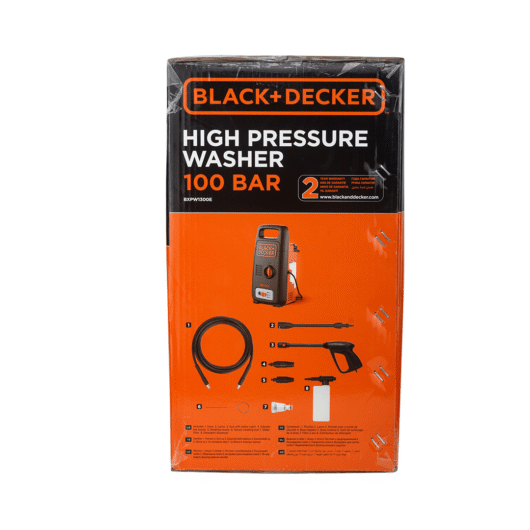 Le Nettoyeur Haute Pression Horizontal BD 1300W Black+Decker BEPW1300HB5 est un appareil compact et puissant, idéal pour les tâches de nettoyage extérieures comme les terrasses, allées et voitures. Avec une pression de 100 bars, un débit de 360 L/h et un réservoir de détergent intégré, il offre un nettoyage efficace et adaptable pour diverses surfaces, tout en étant facile à transporter et à ranger grâce à son design horizontal.