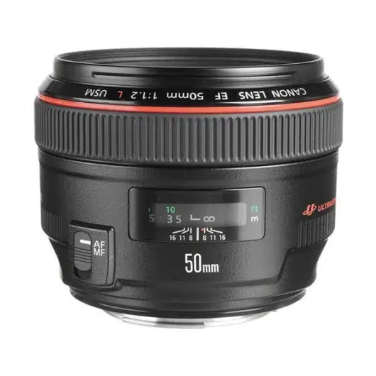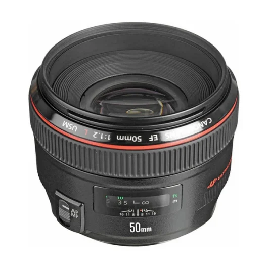 Le Canon EF 50mm f/1.2L USM est un objectif à focale fixe « 50 mm » pleine-format ultra-rapide (ouverture maximale f/1.2) de la série professionnelle L de Canon, avec moteur USM et construction haut de gamme. Idéal pour portraits, faible lumière et effets de profondeur de champ, il offre un rendu premium avec bokeh prononcé et finition robuste.