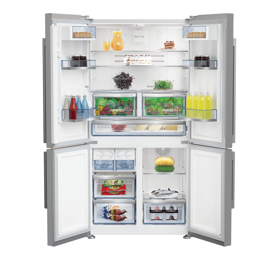 Grâce à ses 4 portes, ce modèle optimise le rangement et limite les pertes d’air froid à chaque ouverture, contribuant à une meilleure conservation et à des économies d’énergie. Il est également équipé de la technologie NeoFrost qui maintient des conditions idéales dans le réfrigérateur et le congélateur, garantissant ainsi la fraîcheur de vos aliments plus longtemps.